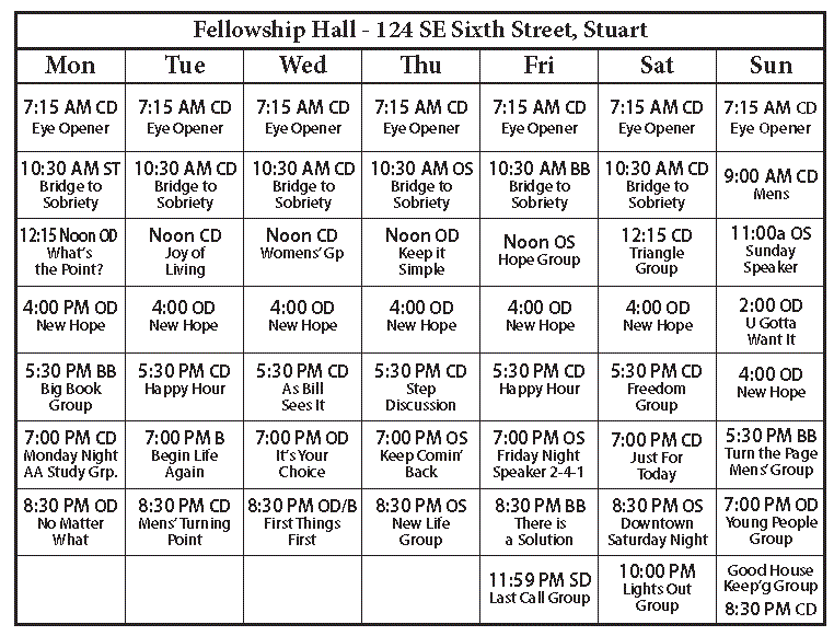 This website is neither endorsed by nor affiliated with Alcoholics Anonymous World Services, Inc. The sole purpose of this website is to help carry the A.A. message to the alcoholic who still suffers. This website is maintained as a resource of public information by Martin County Intergroup, and the Seventh Tradition of Alcoholics Anonymous.  This iste  is fully supported by the Martin County A.A. groups it serves. The trademarks A.A. and Alcoholics Anonymous©, The Grapevine©, and The Big Book© are registered trademarks of Alcoholics Anonymous©.