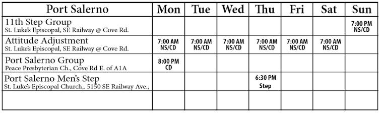 This website is neither endorsed by nor affiliated with Alcoholics Anonymous World Services, Inc. The sole purpose of this website is to help carry the A.A. message to the alcoholic who still suffers. This website is maintained as a resource of public information by Martin County Intergroup, and the Seventh Tradition of Alcoholics Anonymous.  This iste  is fully supported by the Martin County A.A. groups it serves. The trademarks A.A. and Alcoholics Anonymous©, The Grapevine©, and The Big Book© are registered trademarks of Alcoholics Anonymous©.